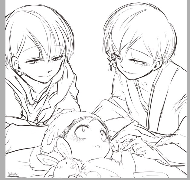 高校生な3人。 #olughopkg 描いてアップし忘れるとかいう?凡ミス?