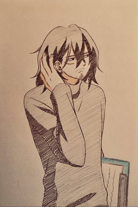 オフショルダー着るのは嫌いなんですけど見るのは好きなんです…!😑💕 何回描いても相澤先生描くの難しい…🤦♀️ #落書き #相澤消太