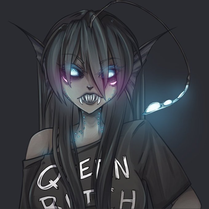 Mikola, Deep One Oc. She is based off of a deep sea dragonfish. She hates her cheek bioluminescence, and her singing voice has the alluring effect Sirens have. She is very aggressive. Of course, she worships Father Dagon and Mother Hydra.