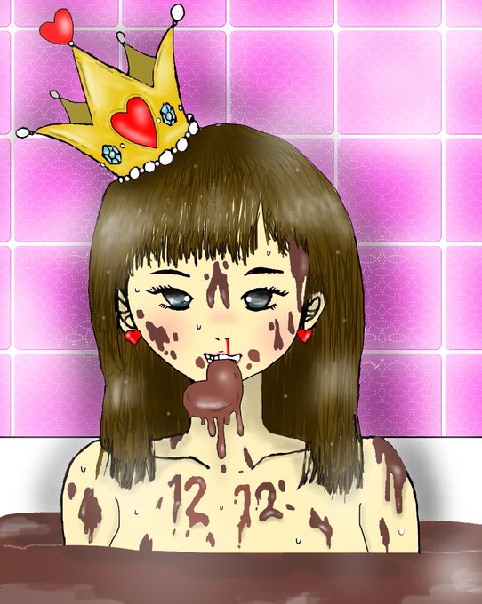#イラスト垢 #カラーイラスト #手描きスキャン #ibispaintx #過去絵 #エッセイ #0214 #バレンタインイラスト #HappyValentinesDay #彼氏と私 #遠距離恋愛中 #チョコ風呂 #温泉 #インスタより