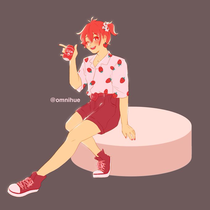 riku in that strawberry-themed outfit!! 🍓