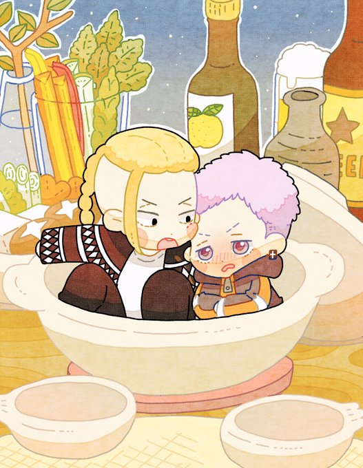 ネコナベならぬドみ鍋。 ドラみつちゃん、ぎゅうぎゅう近いので照れる🍯くん。