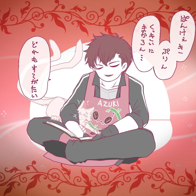 そんな本日の近侍はシール産の小豆長光。レシピを見ながら今日のおやつを考えてたはずですがいつの間にか夢ごこち...とりあえず小脇の猫又審神者を離してあげて💦