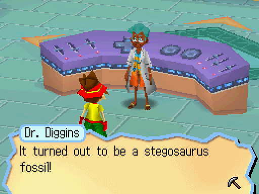The scatterbrained director and head researcher for the Fossil Center. He shows you the ropes when you first arrive at Vivosaur Island, and gives you your first fossil.