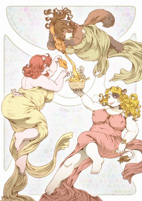 #2016自分が選ぶ今年上半期の4枚 ニクしか描いてなぃ……(;==)。(※一枚はハダイロ警報に引っかかりそうな気がしたので加工しました…)