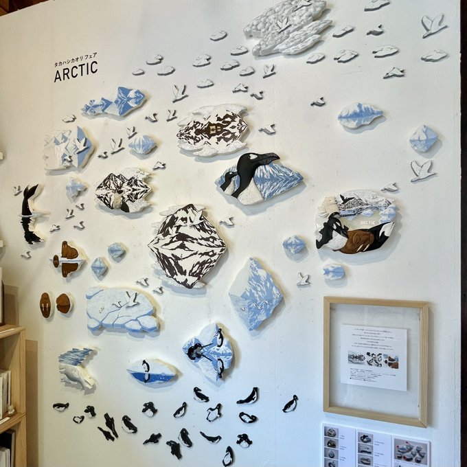 フィギュア作家・タカハシカオリさんのフェア開催中。旅を続ける鳥たちの作品を展示、今回の旅先は北極です。※18(火)-20(木)はフェアお休みです。