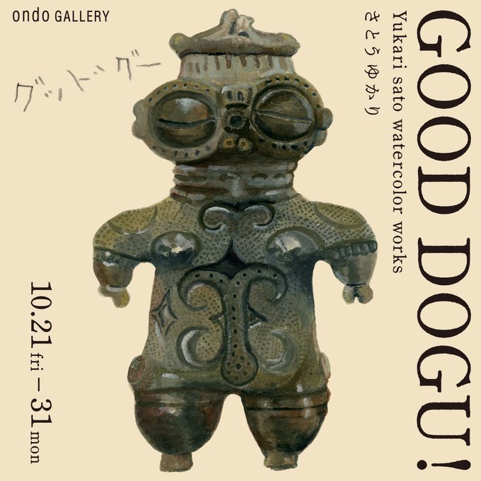さとうゆかりさんの展示開催。近年ライフワークとして描いている〈土偶〉をテーマに作品展示。アートとデザインを行き来し生まれる、奥行きある世界をご覧下さい。