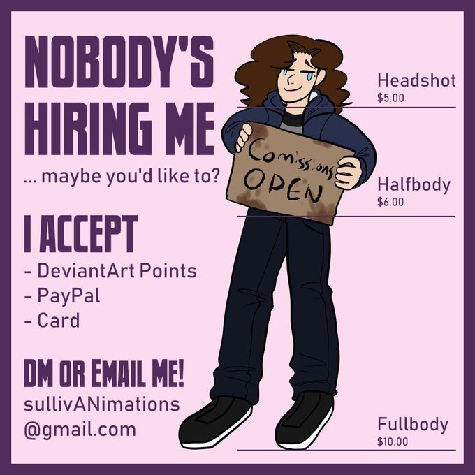 I forgot to mention either DM me with your order or email me at sullivanimations@gmail.com!