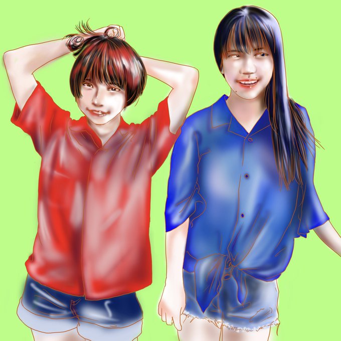 #この作品がなかったら今の自分は存在しなかったと言っても過言ではない 1枚目:短大の時の授業で描いた絵。評価良くて展示もされた。2枚目:2年くらい前、何となくトレス絵の方向性が掴めた絵。3枚目:トレス絵の集大成。これ以上の絵は描けそうもない。名刺代わりに置いてく。