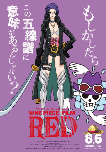 🚨 A menina misteriosa do filme 'RED' teve seu visual finalmente revelado. Está escrito na imagem promocional: "Ei, Luffy! Por que você não se aposenta como pirata?"