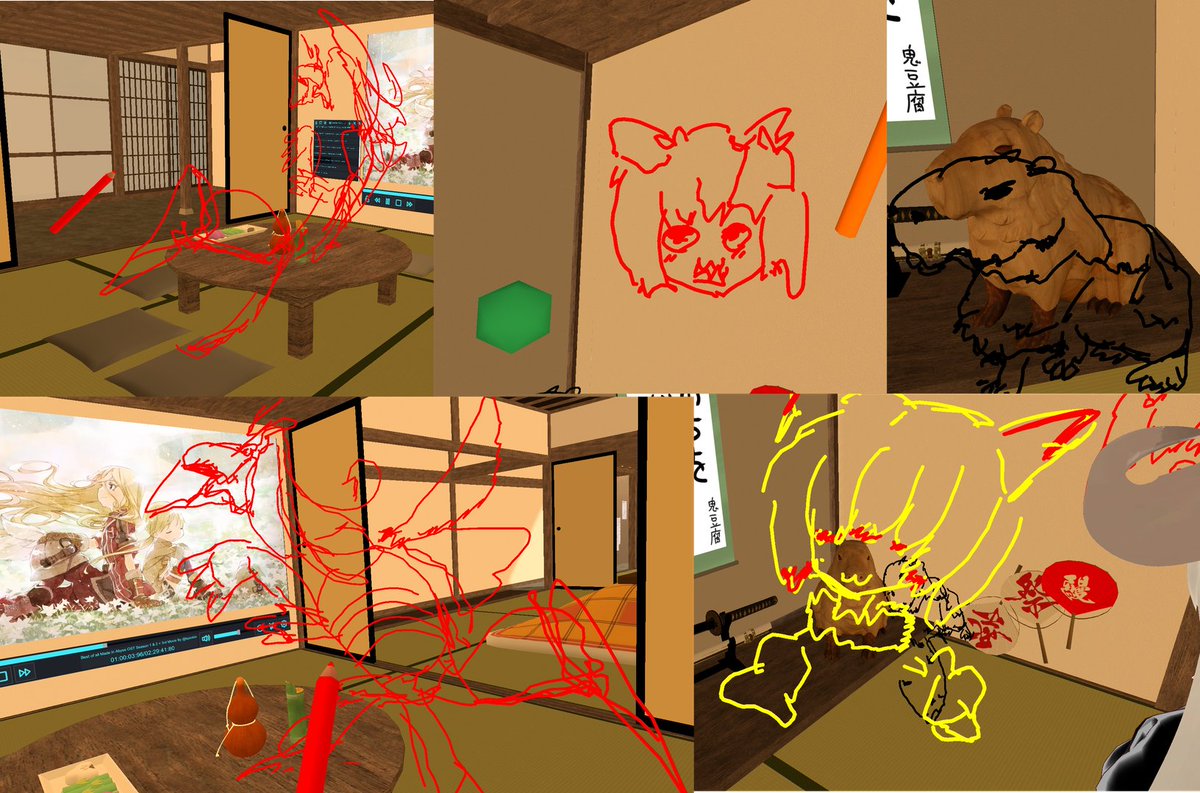 絵を描いた息抜きに絵を描く BGM流してるのはデスクトップも同じだけどVR上というだけで臨場感があって全然違く感じるのは凄い …後VRだと人より動物とかモンスターとか機械の方が映える気がする、再生リストに動物や3Dのモンスターやロボ映像入れて模写してみよう