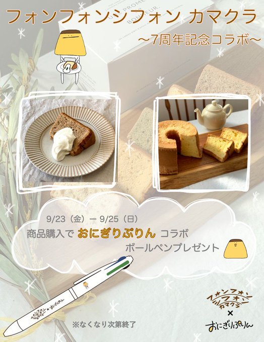 先日も告知しましたが、鎌倉駅徒歩5分にある"フォンフォンシフォン カマクラ"さんとコラボします。 日時は、明後日の9/23(金)〜 9/25(日) 是非、お立ち寄りください。 https://t.co/zNckTXOmAy… #おにぎりぷりん #コラボ #フォンフォンシフォンカマクラ #鎌倉 #シフォンケーキ #up_t