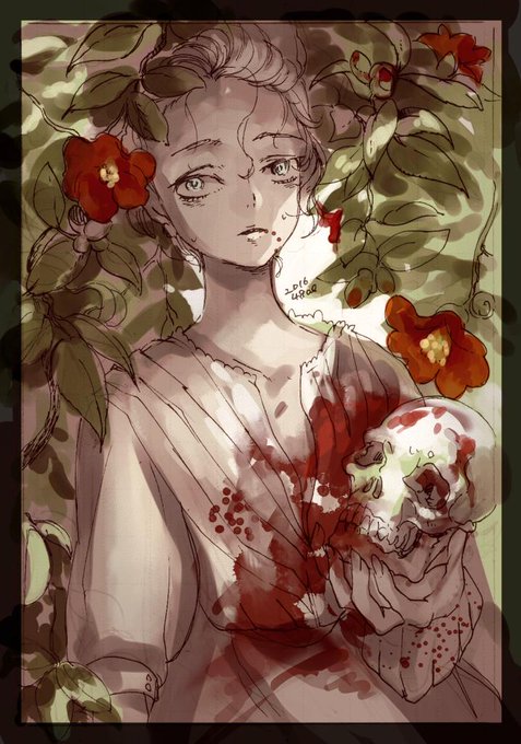 性別の曖昧な顔で血生臭い絵をごりごり描くのが好きです_(._.)_ #GW創作クラスタフォロー祭 #絵描きさんと繋がりたい