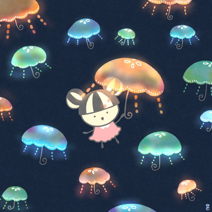 夜道も明るく照らすくらげ傘☂️ #イラスト #くらげ #オニール