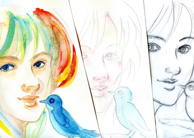 水彩は修正できないと思ってたんですが水で消してやり直せるんですね。でも両目とも一度消してやり直した目。これ以上は紙がぼろぼろに…目だけ位置を変えられたら…パソコン上なら可能じゃん!ということでペイントツールで目の位置だけずらし修正しました。ちょっとはマシになったかな?(;´Д`A