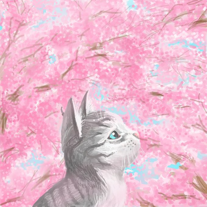 桜とニャンコ🌸❤️❤️ アクリル絵の具 A5ケント紙 おはようございます😃 暖かい日が続き、お花見日和🌸です❤️❤️ 綺麗だニャ〜❤️❤️🌸🌸🌸❤️ #鬼辰一日一絵 #みんなで咲かせるSNS桜まつり
