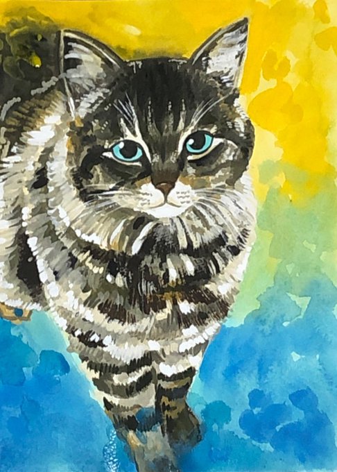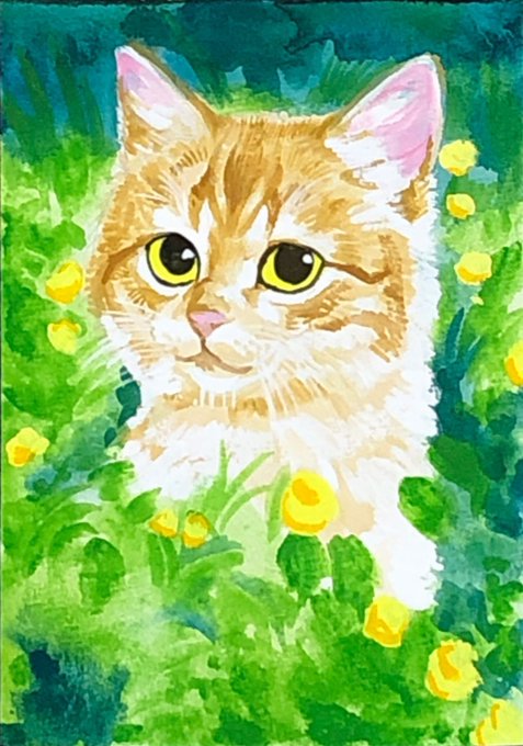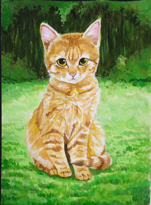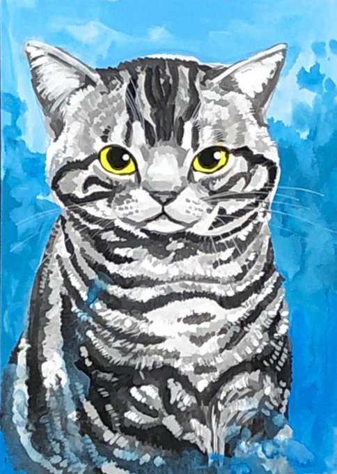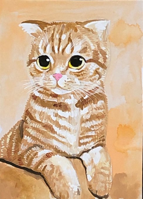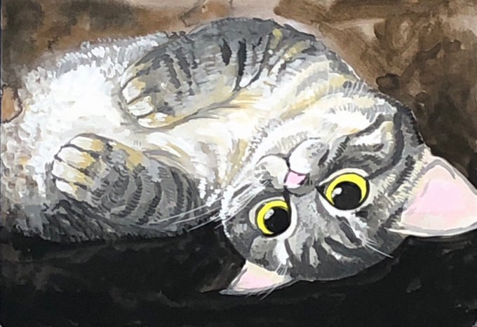 おはようニャンコ❤️🥰 アクリル絵の具 B5ケント紙 おはようございます😃 #鬼辰一日一絵