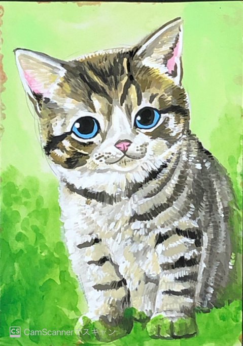 仲良しニャンコ アクリル絵の具 A4ケント紙 #鬼辰一日一絵