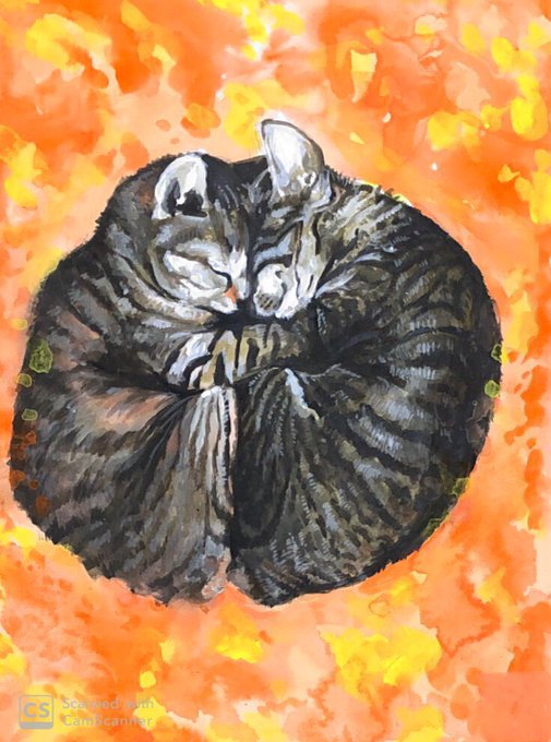 甘えん坊ニャンコ アクリル絵の具 B5ケント紙 おはようこざいます❤️ 今日もかわいいニャンコで、お目覚めください❤️❤️ #一日一絵 #アクリル絵の具 #猫の絵