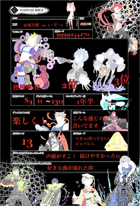履歴書更新( 厂˙ω˙ )厂うぇーい 今まで書いてきたやつ全部入れたかったけど無理やった() ふぁぼりつで気になった方お迎え #コンパス #コンパス履歴書 #コンパスお絵かき #コンパスイラスト #コンパス晒し