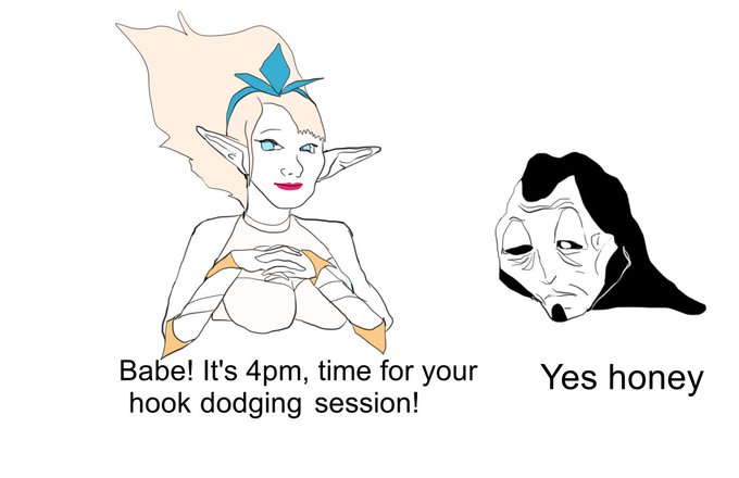 here's my current drawing! that i will color in later, but also heres another thing i made of something that happens between me the immobile adc and my bf the janna with no limits