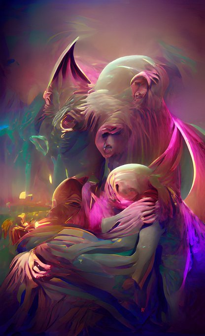ウテナとアンシーかな… 二枚目が、TV版と劇場版の2人がそれぞれいて、例のダンスシーンを眺めているようにも見えるんだが最高にエモくない…?AIの感性は化け物か…?