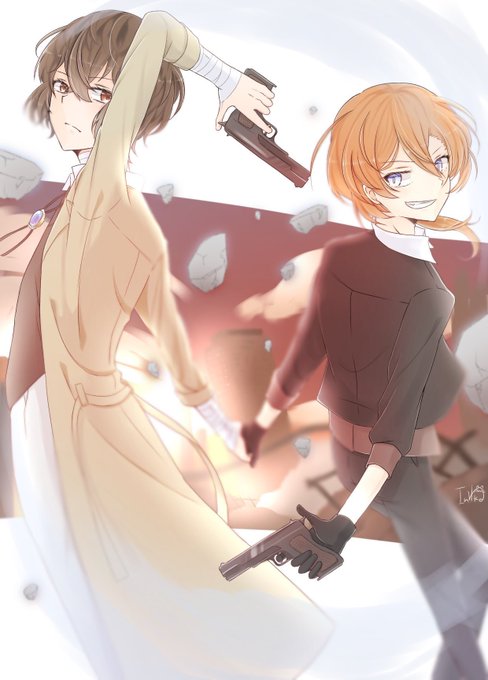 #真凛の太中捏造息子 と #いんねこの太中捏造娘 後ろにいるのは頼れる姉がいるといいなぁと思って描いた太宰雅(だざいみやび)です!!