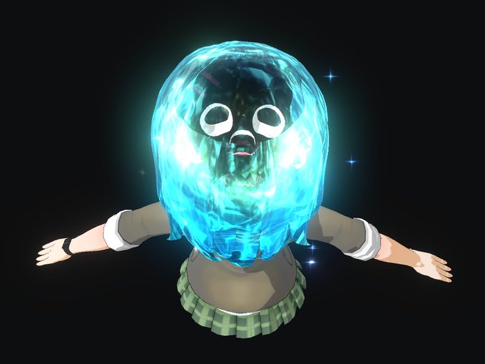 弱点は透過してるので、決して人様に見せられない角度があること。 この辺うまくシェーダーの処理を作り込むか、(モデルがいじれる場合は)頭も綺麗にまるくメッシュ作って、頭頂部分は白っぽいテクスチャにして上手くやるべきなのか。