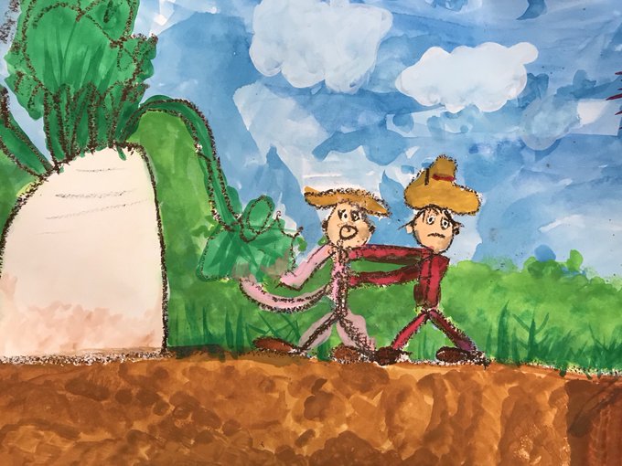 息子が小1の時に描いたおおきなかぶ。 味があってすごい好き🤣
