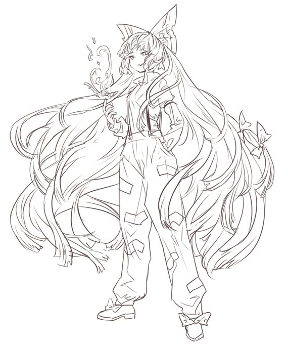 仕事の息抜きにらくがき妹紅 勝手に色とか塗っていいやつです(塗ってください喜びます)