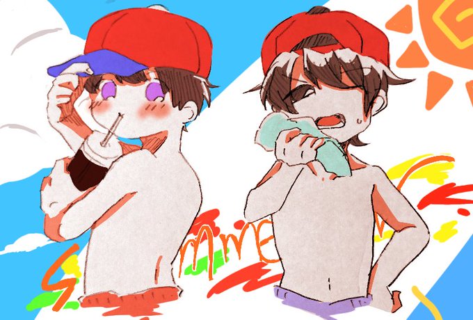 #MOTHER123版深夜の真剣お絵描き60分一本勝負2020 お題「夏」「海」です! 発売日が夏な2人です。向きが変わってたので載せ直しです
