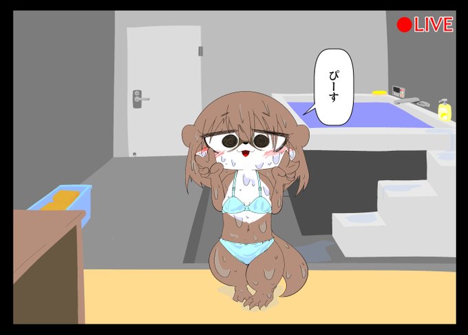 やらかしカワウソのライブ配信 昨日のプールから 「プールで泳いで、濡れたままなにか決めポーズして欲しい」