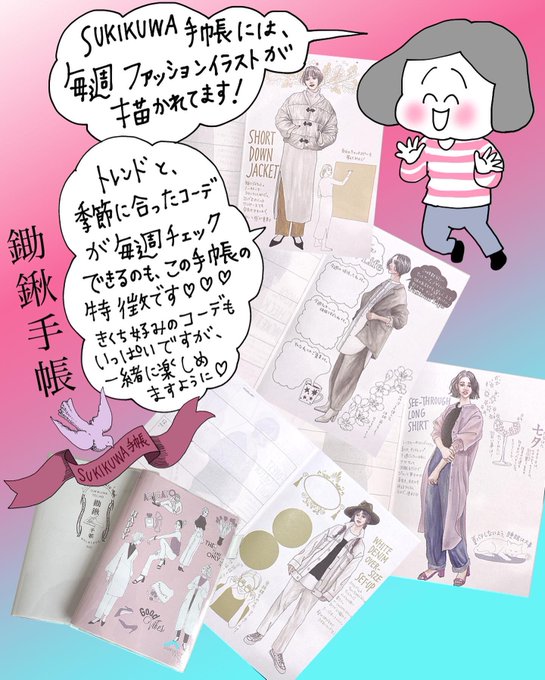 お仕事初めの今日😊お疲れ様です🥸今年もTwitter更新忘れがちですが、宜しくお願い致します🤲#sukikuwa手帳 の #sukikuwaclub も始まっております!#わたしをたがやす 1年になるように、1日1日大切に進みましょー‼️ #文具 #手帳 #手帳術 #手帳の中身 #ファッションイラスト