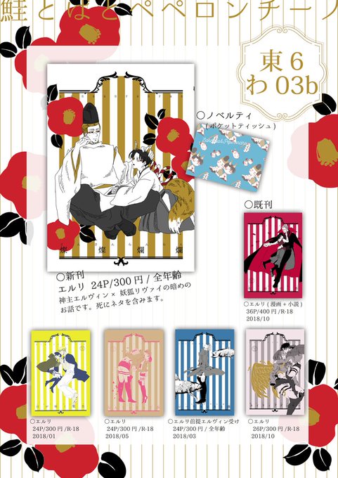 明日のお品書きを作りました。ノベルティで二枚目画像のポケットティッシュ作ったのでもらってください🦊🙏あと新刊で削ったページ一枚を載せたペーパーがあります… 開始後30分後くらいは留守にしています。明日楽しみです!!!!