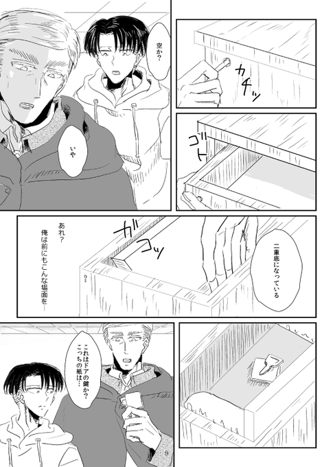 インテ新刊① A5/36P/400円/全年齢 現代に調査兵団のえるびんがなぜかやってきてりばいと探検(?)するお話です。説明が難しい…