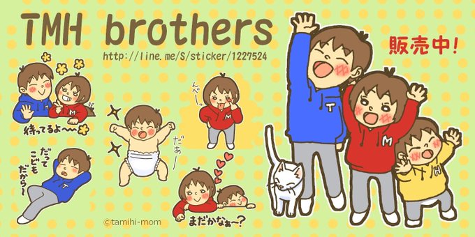 自身3作目スタンプの紹介です。 息子たち3兄弟をモデルにドタバタスタンプを作りました(*^o^*)