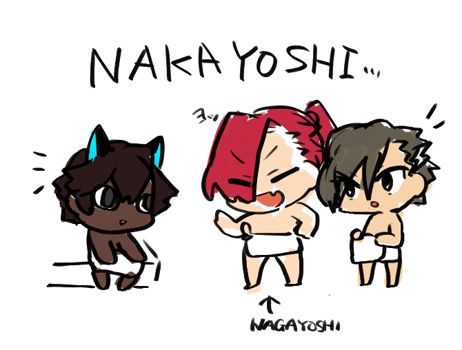 鬼武蔵とマンドリカルドくんとジュナオが仲良さそうにしてるのカルデアならではの交友関係って感じで笑顔になった落書き