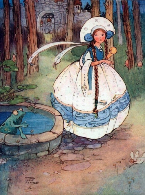 Illustration from Grimm’s Brothers : “The Frog Prince” illustrated by Mabel Lucie Atwell/ enchantedbookletdotcom