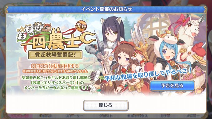 あーエリザベスイベ面白かったどー‼️🐮🥛🥩🌰 またマヒルちゃんが大活躍する新イベに期待するべや‼️🐮🥛🥩