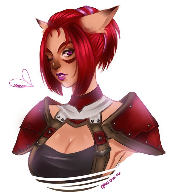 A very lovely #ffxi mithra commission! All glammed up just in time for Valentine's Day 💕
