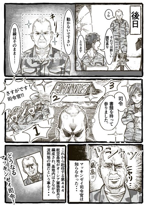 司令官の写真がニヤケているのなんで…マンガァ マッキンゼさん賢者さん達に栄転の筈が直前前線配置ビームくらうくらいなので事前に赴任先とか調べたりしてなさそう(+トリガー444入り記念日オマケ)