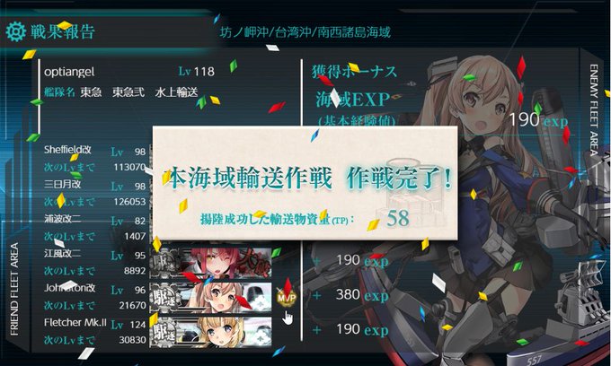 E5-2丙、輸送完了。最後だけA勝利。あと実質2日で残り2ゲージ。なんとか間に合わせる。