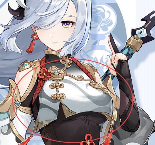 does anybody know the definitive name for what Kujou Sara and Shenhe have on the front of their chests? (Mostly shenhe)