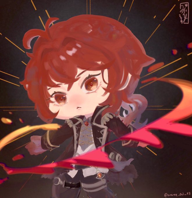 Since I start playing #GenshinImpact again, here’s little fanart of diluc for luck- please come (>人<)