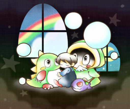 私の絵はレトロゲームに影響されてるって前に呟いたけど、主にこれらに影響されてる 絵が古いので見辛かったらすみません レインボーアイランド(絵はバブルボブルだけど) ロッドランド 奇々怪界 あと、個人的に絵が気に入ってるフェアリーランドストーリー