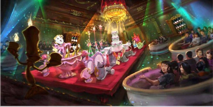 野獣の城には、映画の名曲にあわせて動くライドに乗るタイプの日本独自のアトラクションもオープン予定!