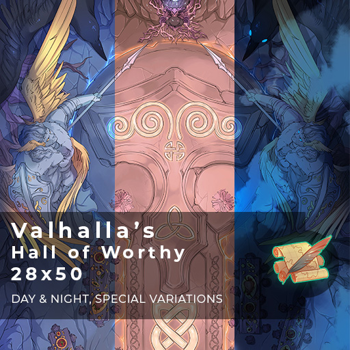 One of the most recent battlemaps that became quite popular, Valhalla's Hall of Worthy [28x50] is out on @roll20app marketplace! Check it out if you prefer one-time purchases through this platform! #Roll20 #VTT #TTRPG