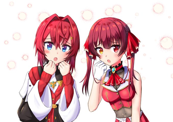 『『ほにゅ?』』 ドリクラ2夜連続コラボお疲れさま!最高だった! #赤髪JK美少女アンマリ #絵ンジュ #マリンのお宝