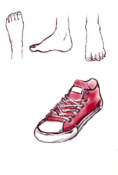 魅力的な靴・足元を描くから、足とスニーカーを描くをやってみました。c⌒っ*・ω・)っφ #ipad #procreate #模写 #練習