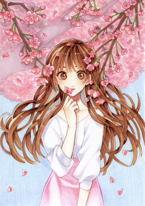 今日は #さくらの日 ということで、 先日上げた絵を再掲(✿´꒳`)ノ #オリジナル #創作 #コピック #桜